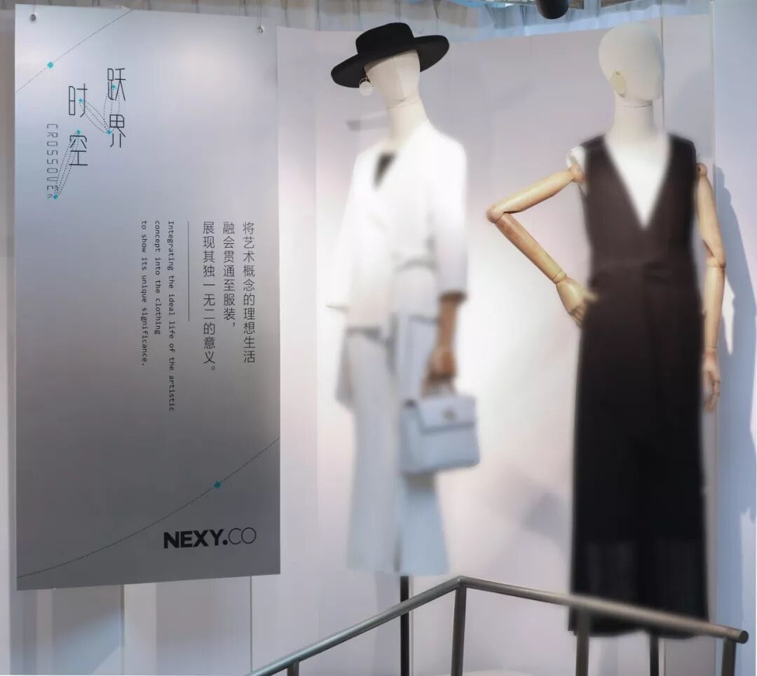 ▲本季春夏新品NEXY.CO融合艺术、建筑与时尚,将智慧生活的概念跨界贯通至服装,在富有强烈艺术张力的陈列布置下,邂逅品牌的匠心工艺。